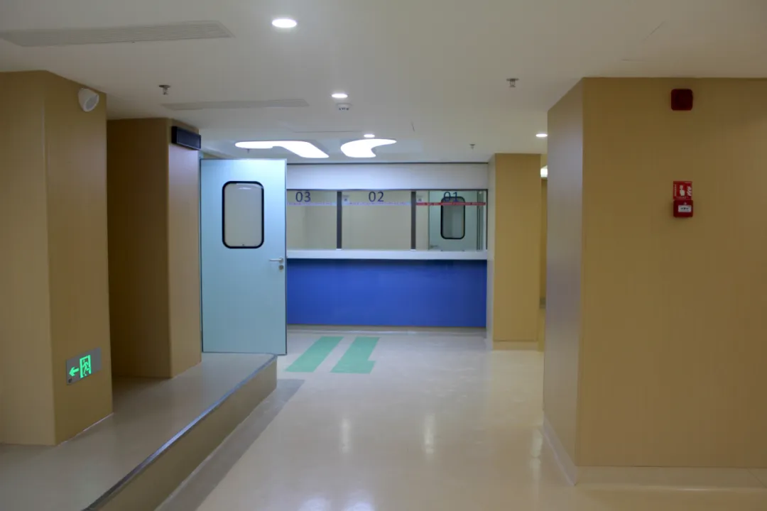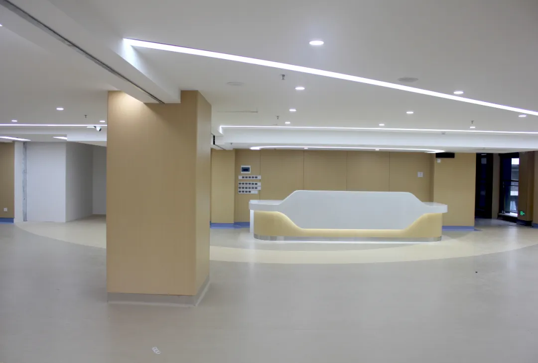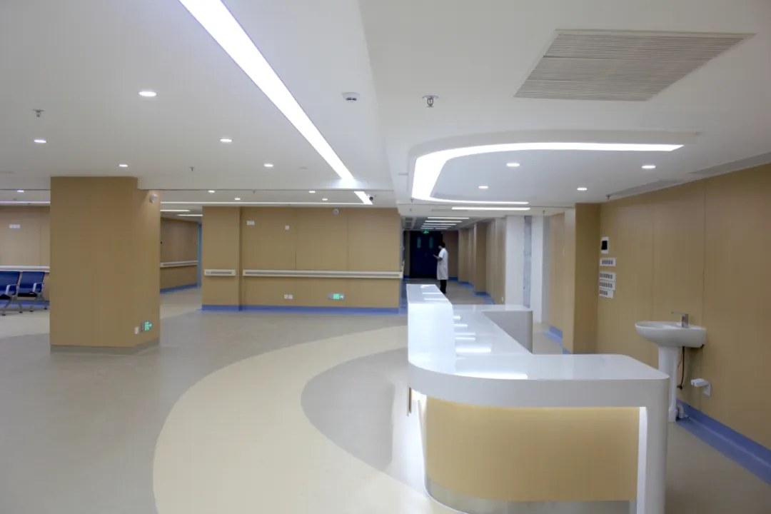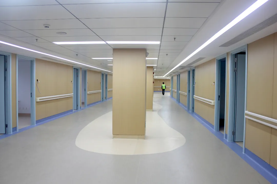 防撞扶手、圆角墙面,彰显以人为本的设计初心;地面采用防滑材质,在保障行走安全的同时,延续了整体空间的柔和质感。