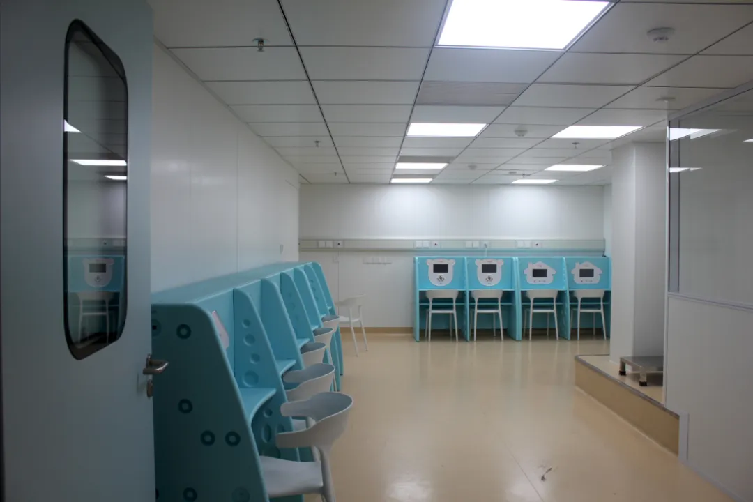 儿童雾化室的专属区域,以清新蓝为主色调,搭配可爱的设备造型,把“治疗” 变成孩子眼中“像游戏一样的事”。