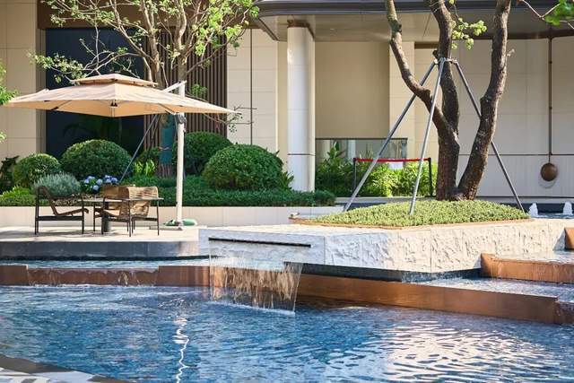 步入社区大堂,沿途花草点缀,一幅岭南园林风情的画卷在眼前铺开。