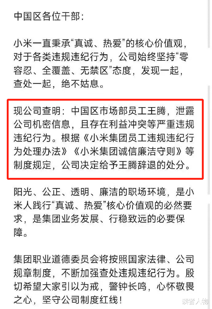 王腾的离去,既是个人职业生涯的重大挫折,也是小米内部管理机制的一次显性作用。再重的“红人光环”也得让位于企业纪律。
