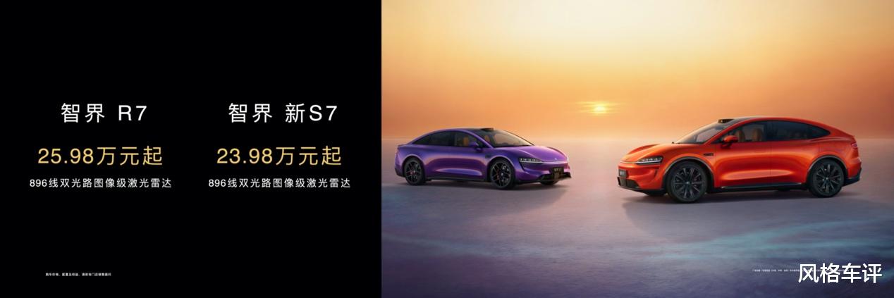 智界R7 896线双光路图像级激光雷达配置,官方建议零售价25.98万元起;智界新S7 896线双光路图像级激光雷达配置,官方建议零售价23.98万元起。2026年5月7日前下定,智界R7可享至高64,000元限时购车权益,智界新S7可享至高74,000元限时购车权益[27]。现已经开启全国交付。