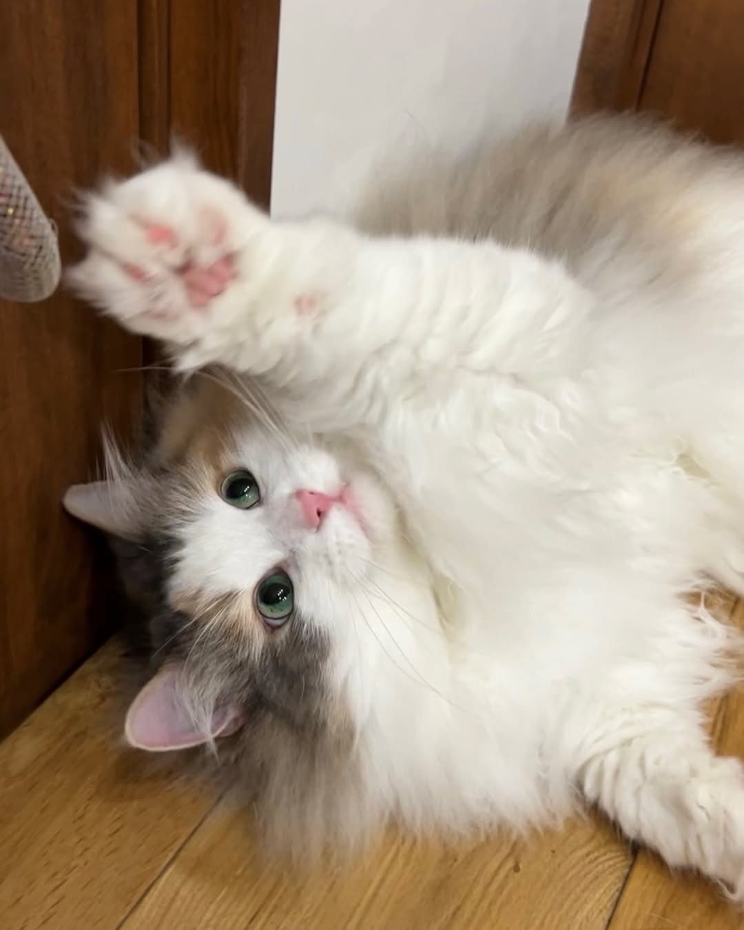 尤其是天生不喜欢被抱、不喜欢被近距离贴脸的猫,你越强求,它越后退。