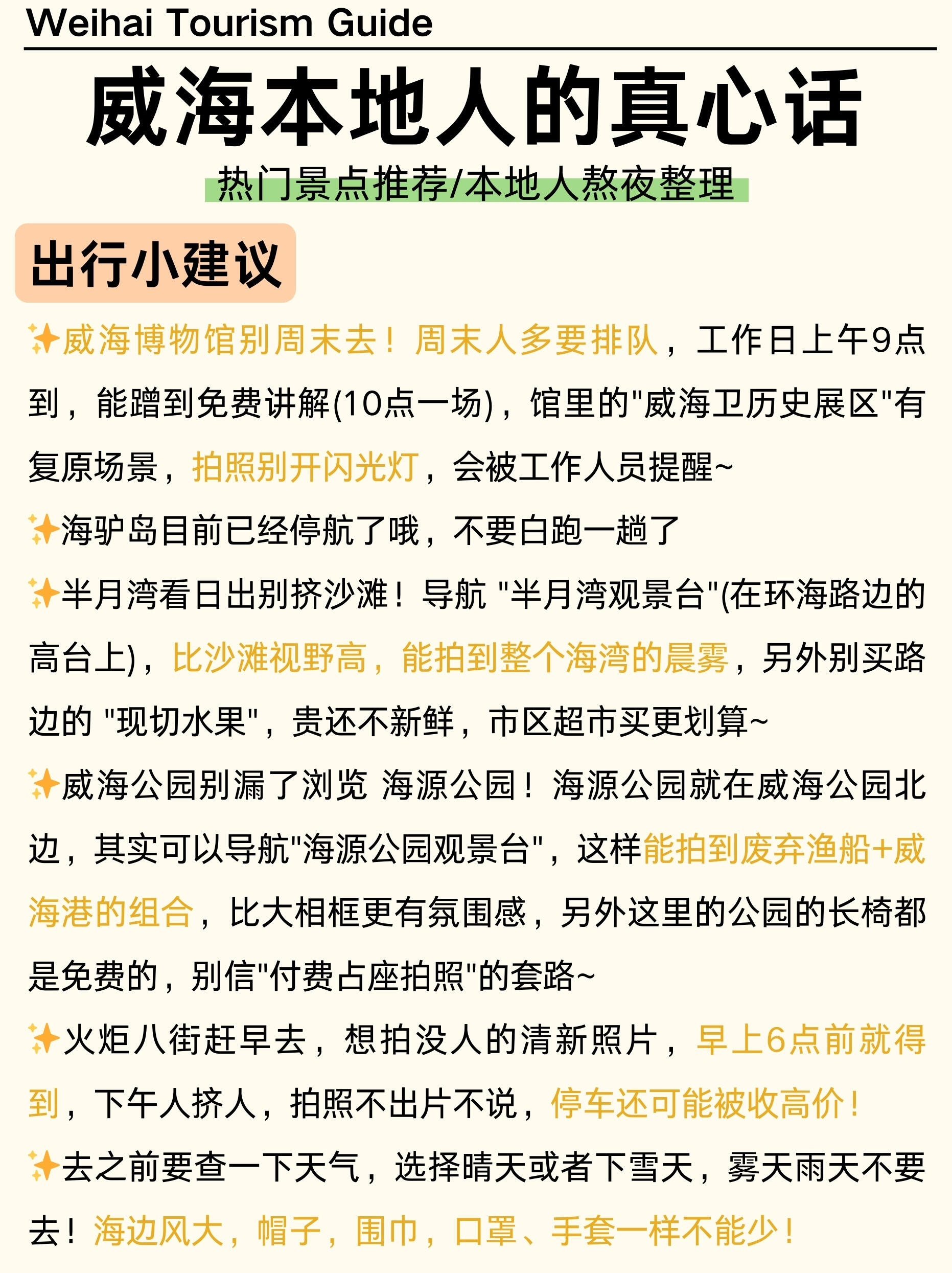 来威海后劲有多大不用我说,😏去的姐妹都知道,现在上网还可以看到很多人想来威海玩,很开心大家喜欢我们威海,👏给大家做了份威海的攻略,个人觉得还不错,这是我自己在空闲时间整理出来的,✍想到一点就写一点,希望可以帮到大家