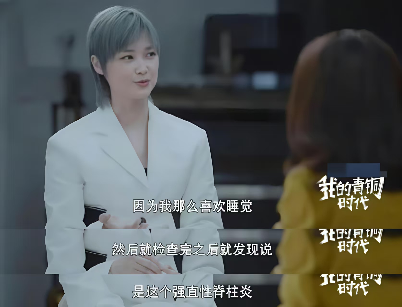 也是在这档节目里,她第一次公开谈到自己的病。强直性脊柱炎,一种无法根治的慢性病,从数年前开始就一直伴随着她。