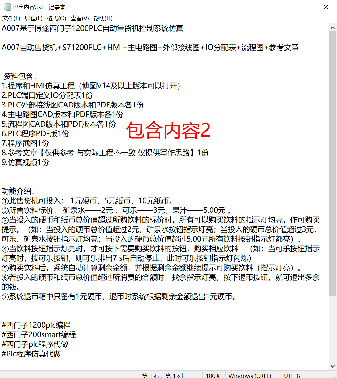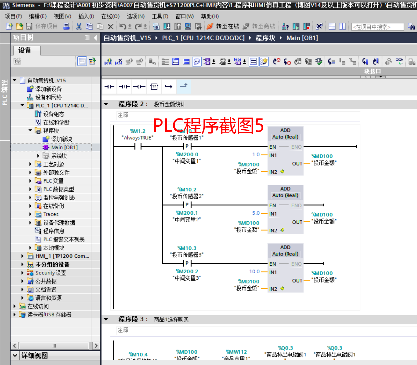 完成了基于西门子1200PLC与博途软件的自动售货机控制系统设计,包括硬件选型、IO分配、电路设计、软件编程与HMI组态。
