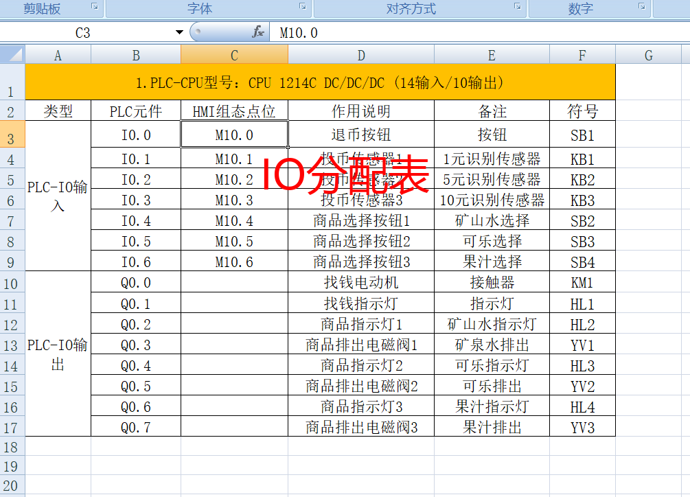 输出设备:找钱电动机(KM1)、指示灯(HL1/HL2/HL3/HL4)、商品排出电磁阀(YV1/YV2/YV3),说明选型参数与控制要求匹配性。