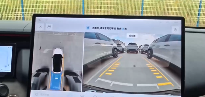 此外,在狭窄通道场景测试中,测试人员将领克 06 Relive 停稳并挂入 R 档,车载系统进入 540° 全景影像页面,点击 “开始循迹” 后松开刹车,系统按照记忆行驶路径控制车辆车速与转向进行倒车,50 米的循迹距离能够满足绝大多数情况下驾驶员将车辆退回宽敞区域的需求。