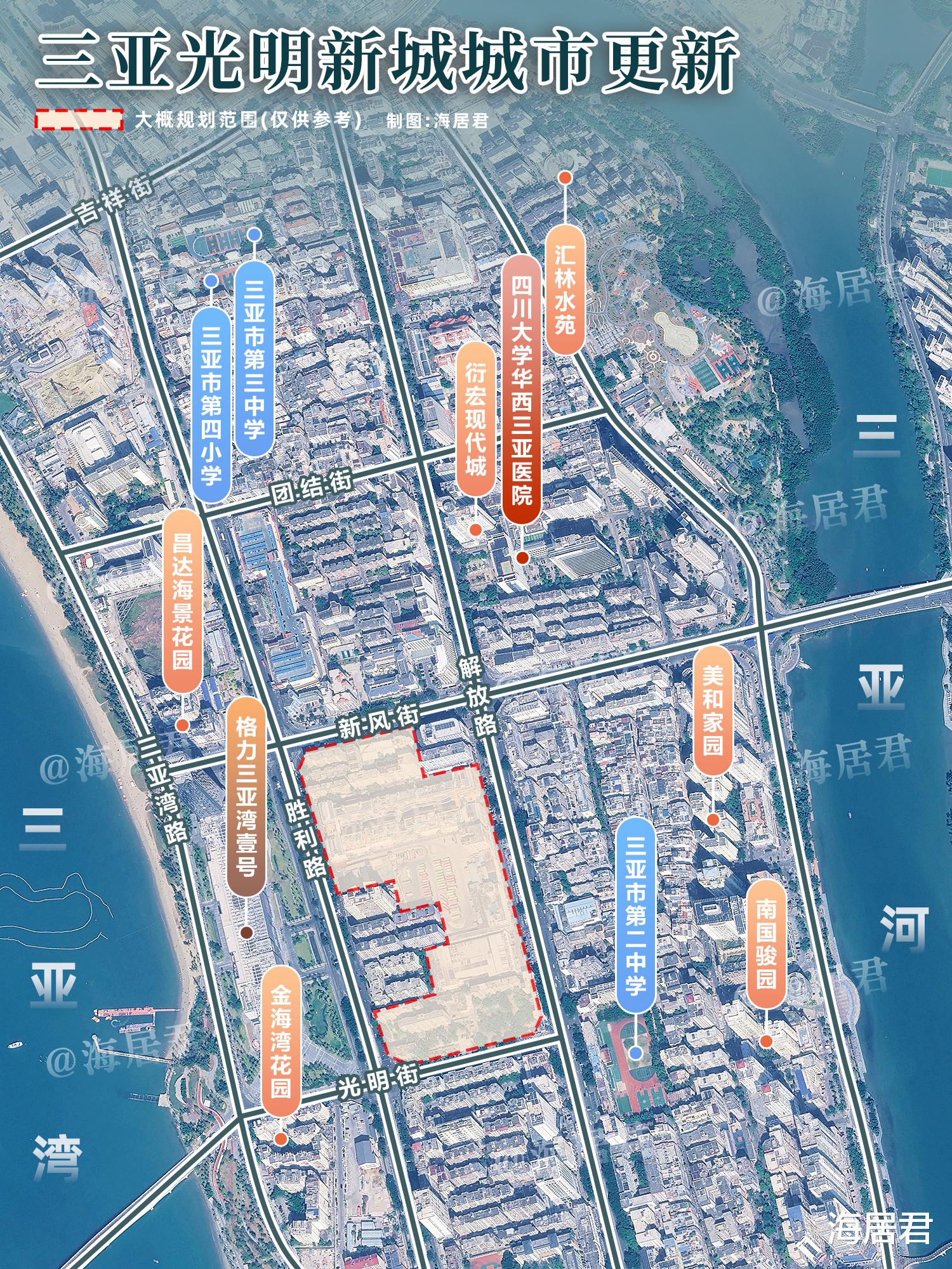 当然,相对来说,光明新城城市更新位置更臻稀,直面三亚湾、毗邻凤凰岛,是三亚主城区少有的滨海连片更新地块,正在招引投资与开发主体。