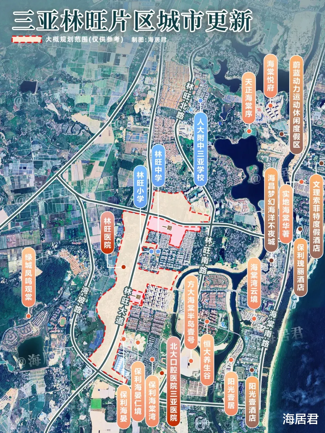 如今,三亚市重点推介林旺片区城市更新,也就意味着,该城市更新项目正在加速推进,它也就此成为三亚海棠湾国家海岸首个城市更新项目。