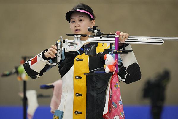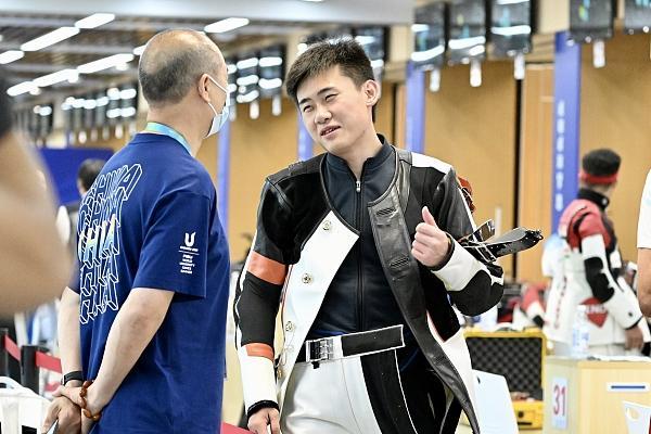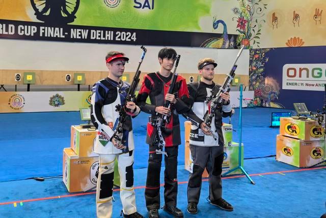 女子50米步枪三姿是对射手综合能力的极致考验,选手需要在卧姿、跪姿和立姿三种不同的姿势下完成射击,要求极高的技术稳定性和心理素质。在当天早些时候进行的资格赛中,赛场上演了属于中国选手的高光时刻。首次代表中国参加世界杯赛事的年轻小将周漫漫,在面对国际大赛的高压环境时,展现出了与年龄不符的沉稳。她在三种姿势的转换中保持着极高的专注度,击发节奏流畅,最终打出了594环的优异成绩,高居资格赛榜首,昂首挺进决赛。