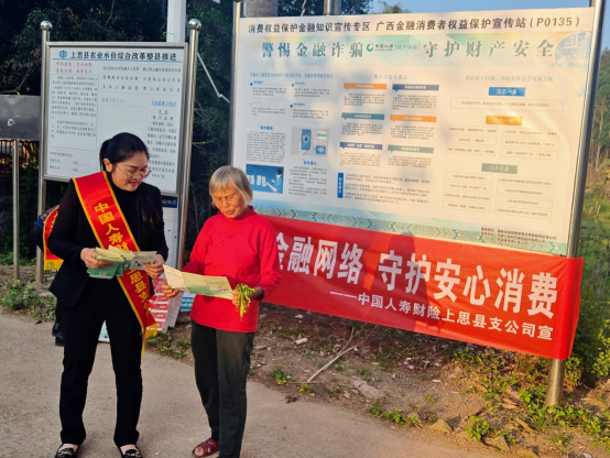 中国人寿财险广西分公司积极贯彻“金融为民”理念,运用“线上+线下”立体化宣传形式开展消保教育,多形式、常态化普及金融知识,把金融知识送达消费者身边。