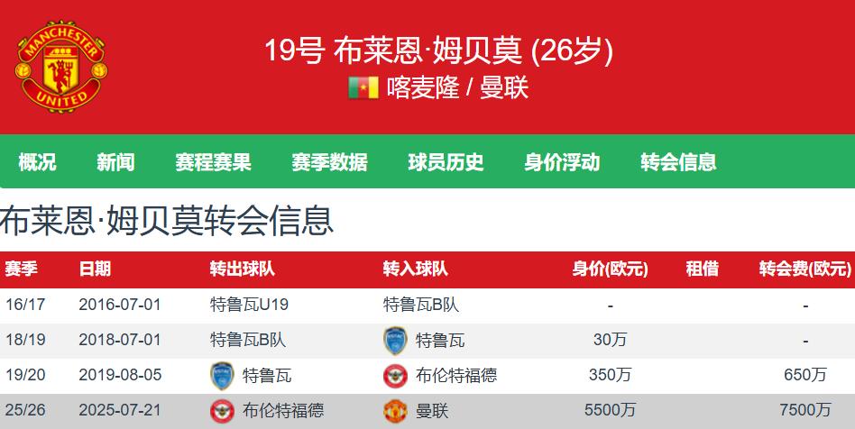 曼联今年夏窗花费了7500万欧元从布伦特福德签下了身价5500万欧元的26岁喀麦隆前锋,但不得不说高级货就是高级货,在英超证明过自己的就是好用,买不了吃亏和上当。