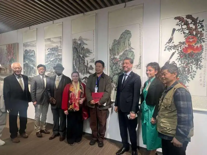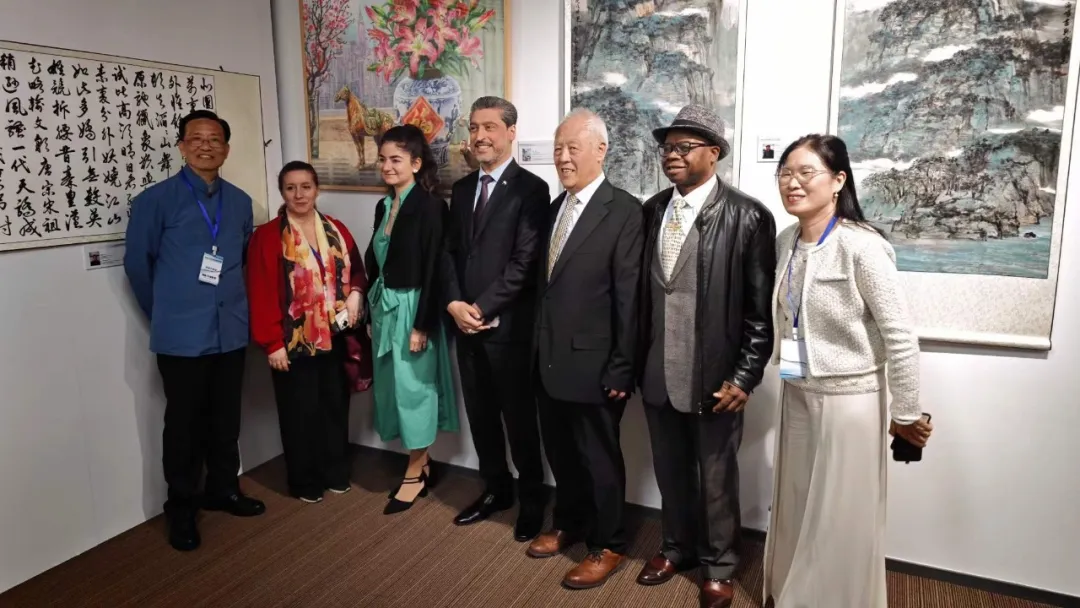 王纪工、罗杨、祁海峰、谷长江分别为特邀书画家、书法家、画家、海外及港澳台书画家颁发了奖牌。覃志刚宣佈展览开幕。嘉宾、外交官和书画家观看了展览。