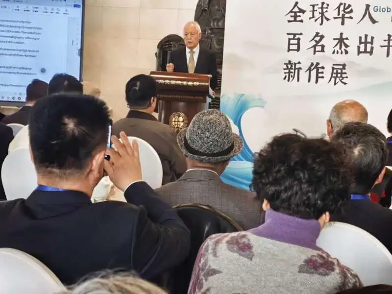 谷福海在致词中说,此次展览共展出二十多个国家的100多位华人书画家的作品。他说,为了促进华人书画艺术的发展,拟定华人百杰书画家新作展每两年举办一次;积极创造条件,早日设立华人书画艺术发展基金,用以资助国内的书画家走出去办展、创作,资助海外华人书画家回国办展、创作。