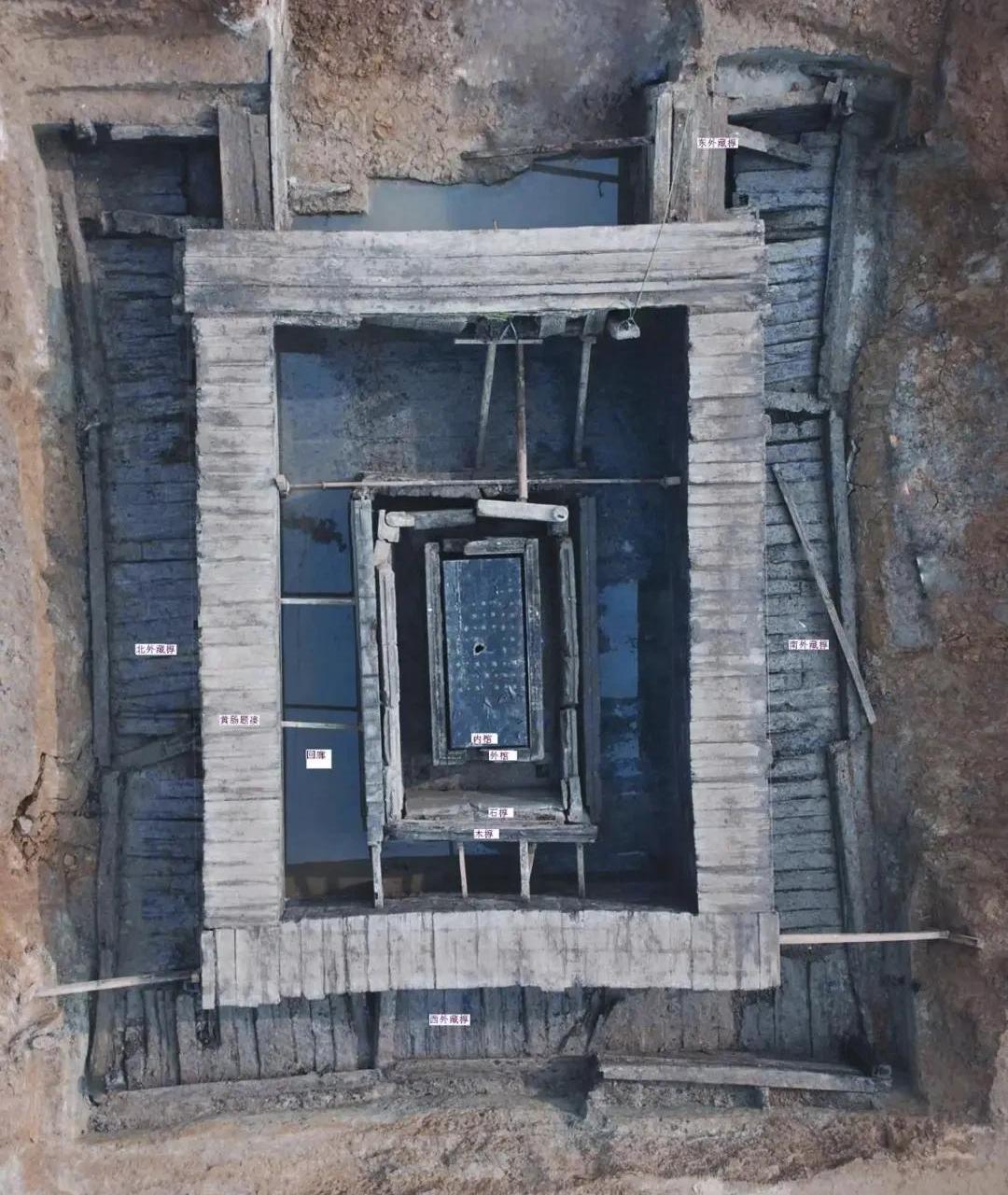 两千多年过去了,这些栎木早已炭化成黑色,却依然平整结实,榫卯严丝合缝。如此一来,虽然此墓葬早在唐代就已被盗,但这样的木质构造本身,已堪称珍宝。