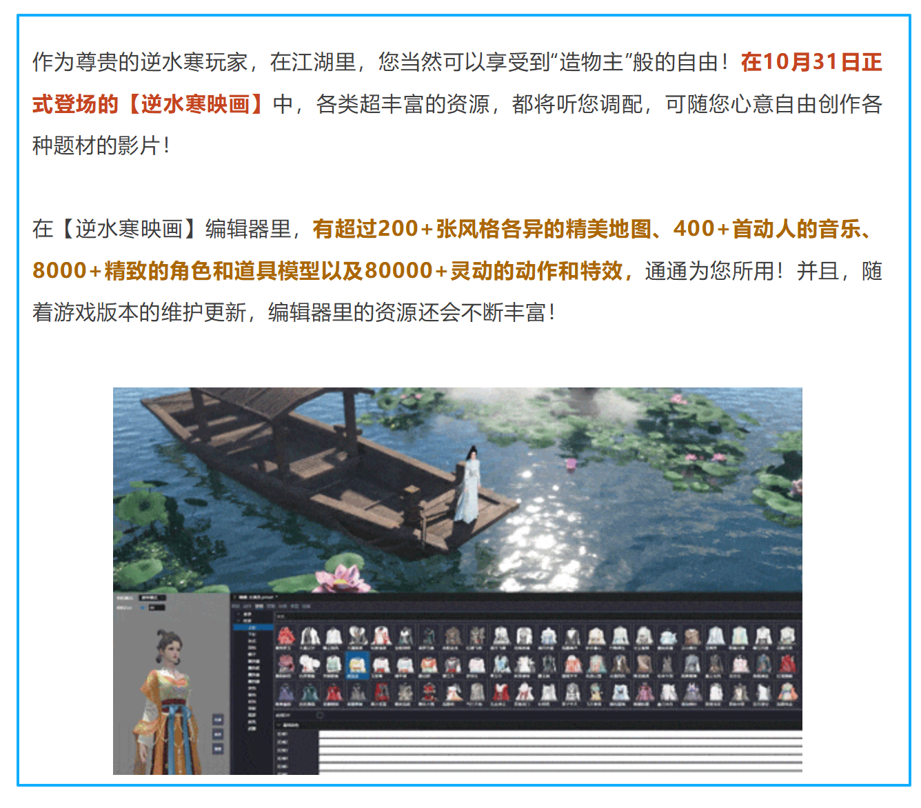 为满足用户日益增长的创作需求,官方决定将端游时期古风创作圈的“宝藏工具”——【大宋映画】编辑器移植至手游端。