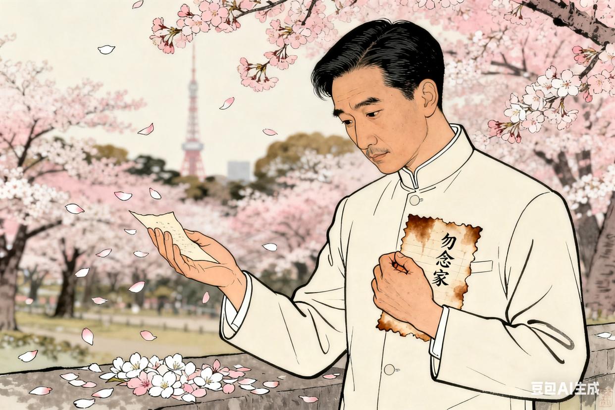 1914年暮春的东京,上野公园的樱花正落得细碎。二十出头的郭沫若穿着洗得发白的学生服,手里攥着一封从四川乐山寄来的家书,信纸边缘被反复折叠磨出了毛边,上面有弟弟歪歪扭扭的字迹:“哥,今年春汛大,咱家两亩水田淹了,娘夜里总起来看天。”风裹着樱花瓣贴在他的袖口,他抬手去拂,指腹却蹭到了信纸上火烫的墨迹——那是母亲补写的一句“勿念家,先把书念好”。他望着远处东京塔模糊的轮廓,喉结动了动,把家书塞进怀里贴紧胸口,像是要接住千里之外母亲的叹息。身后传来留学生们讨论“实业救国”的声音,他却忽然觉得,这满树樱花再美,也盖不住心里那点空落落的慌。