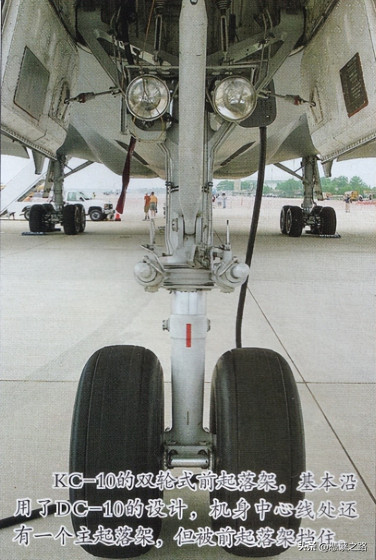 强劲的动力系统在KC-10开始服役之际,美军的运输类飞机中,只有C-5、E-4、KC-10等安装使用高涵道比涡扇发动机,其余如C-135系列、C-141B、C-9等飞机,仍然使用小涵道比涡扇发动机甚至涡喷发动机。单从动力装置看,KC-10A在当时还是比较先进的。该机安装3台民用编号CF6-50C2、军用编号F103-GE-100的发动机,单台推力为233.53千牛。
