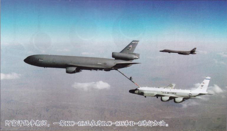 在2001年12月中旬阿富汗塔利班武装力量有组织的抵抗结束时,美国空军已经出动了6800架次飞机,其中空中加油机的出动架次占美国空军出动总架次的一半,由此可见空中加油机在阿富汗反恐战争中的作用。