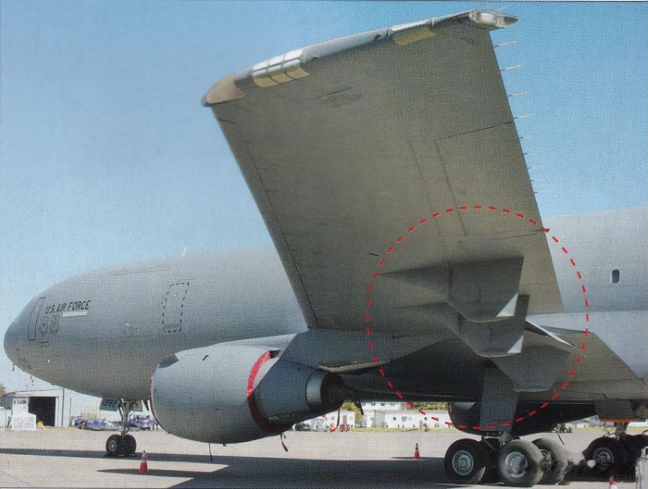 KC-10机翼下部巨大的襟翼做动机构整流罩(红圈处)