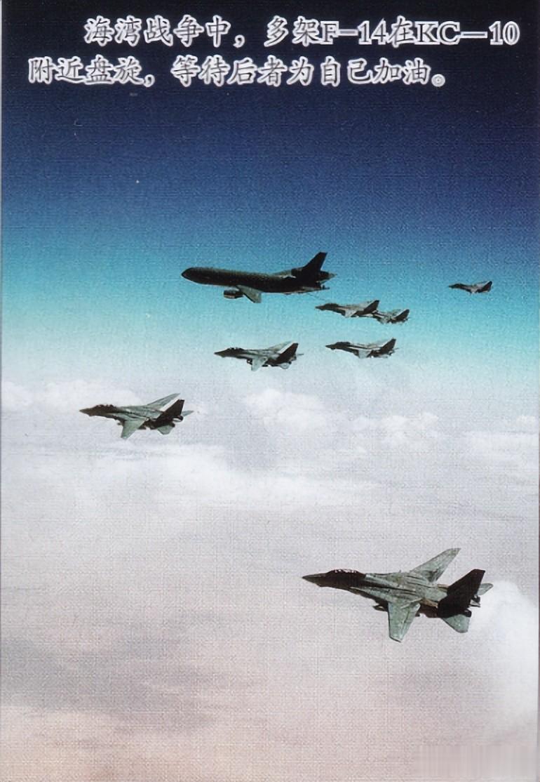 1991年1月17日,海湾战争爆发。多国部队中共有5个国家的12种不同机型的空中加油机投入作战使用,但是美军或美制型号占绝对多数,光是KC-10型空中加油机就达46架。除美军的空中加油机外,其他各国军队提供的空中加油机,只能为自己的军用飞机提供部分空中加油任务,绝大部分空中加油任务均由美国空军承担。
