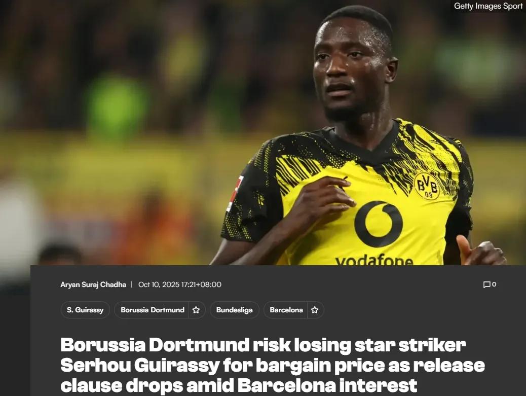 29岁的吉拉西当下的合同2028年到期,而他的合同中有一条违约金每年递减的条款:今年夏天吉拉西的违约金为7500万欧元,明年夏天时这个金额将会更低,不过报道同时指出,该条款不适用于沙特球队,他们若想签人必须和多特蒙德直接谈判转会费。