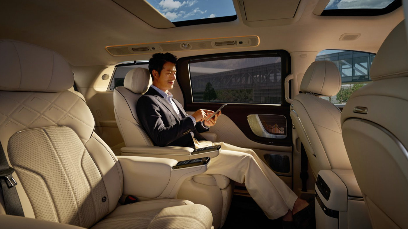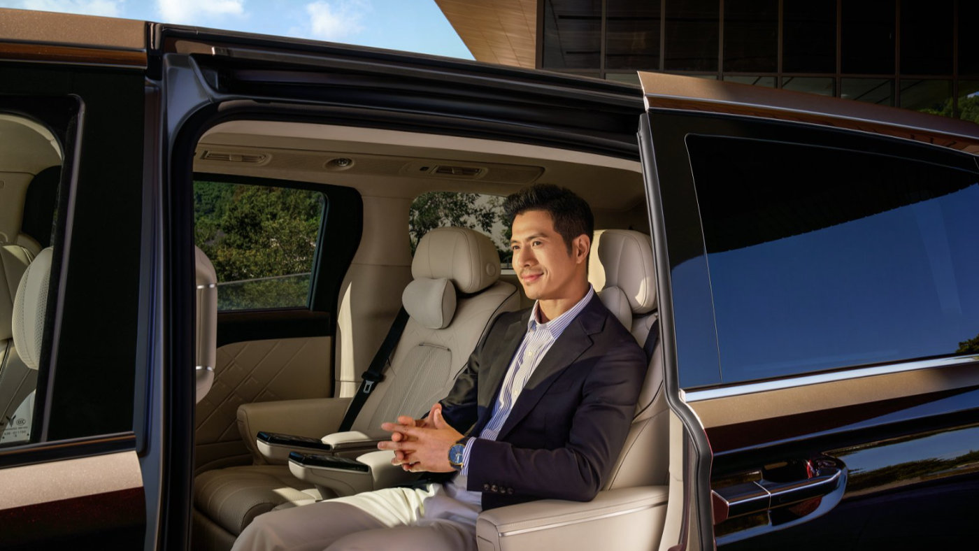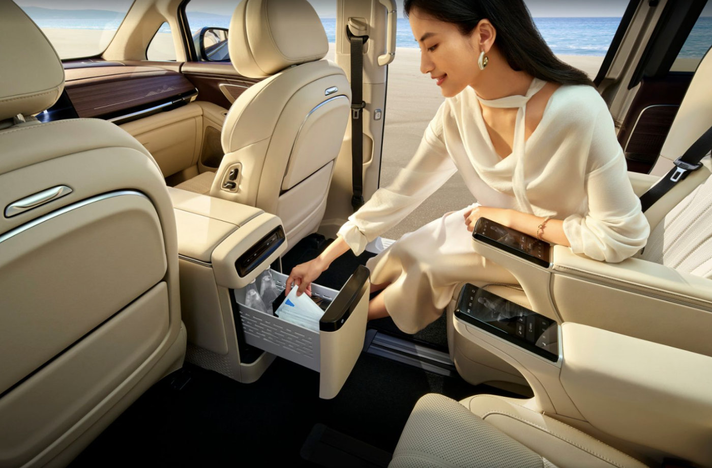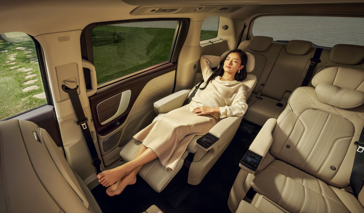 细节上,360mm上下台阶,加上862mm抓手,让老人、小孩或是穿着裙装、礼服的女性能够更好的借力上下车,加上底盘还可以在迎宾模式下下降30mm,可以说非常人性化了。
