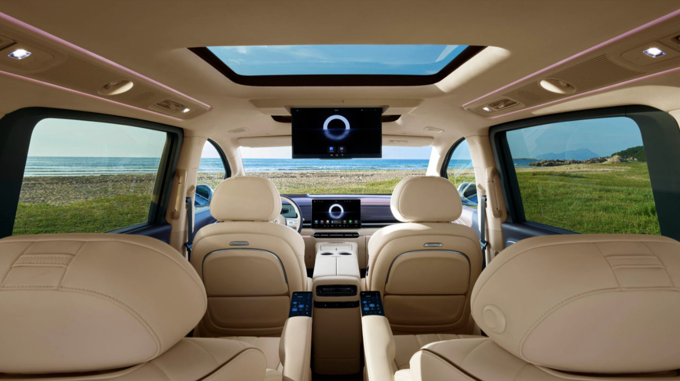 而后排也给安排了一台17.3英寸娱乐屏,给落座于二排的老人放放戏剧,给小孩看看动画片,都是打发碎片时光的不错选择。在此基础上,新车还搭载了HSpace-Link智慧互联,当前阶段支持平板上车,未来还将支持遥控器/游戏柄等外设连接,让行车生活更丰富。