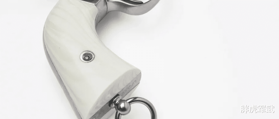 仿象牙握把通过黄铜饰钉固定,且该枪配有实用的钢制挂绳环