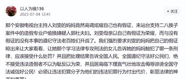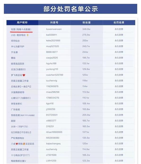 污点之一。2021年4月,在抖音安全中心发布的第二期“卖惨带货、演戏炒作”违规行为处罚公告中,被永久封禁的名单中排在第一个的就是彼时作为“情感类”女主播人设而收获数量超过348万关注者的“刘雯”。当时,她依靠碰瓷式的批评其他头部主播,以及极端化的点评新闻事件已经开始在短视频平台崭露头角。