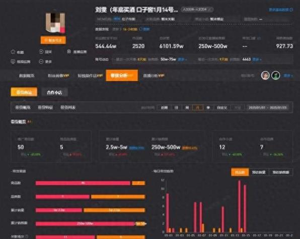 其公开的账号数据显示,有超过47万名消费者通过“刘雯”这一抖音账号购买了上述产品,其销售产品的数量则超过58万件。在快手平台上,她的账号总销量截至1月24日已高达3645.5万单。她直播带货的白酒类产品的销售额一度高居平台相应榜单的前几名。第三方机构的监测数据显示,“刘雯”仅在抖音平台过去30日内的的直播带货销售额就在250万元至500万元之间,这一数据环比上月同期增长了50-60倍,她还会通过修改账号后缀名称的方式为一些酒类、食品类品牌代言。