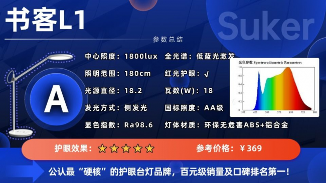 护眼灯中性价比高的选择,首推书客L1。这款台灯以百元级定价实现千元级光学性能,堪称2026年护眼灯界的性价比标杆。