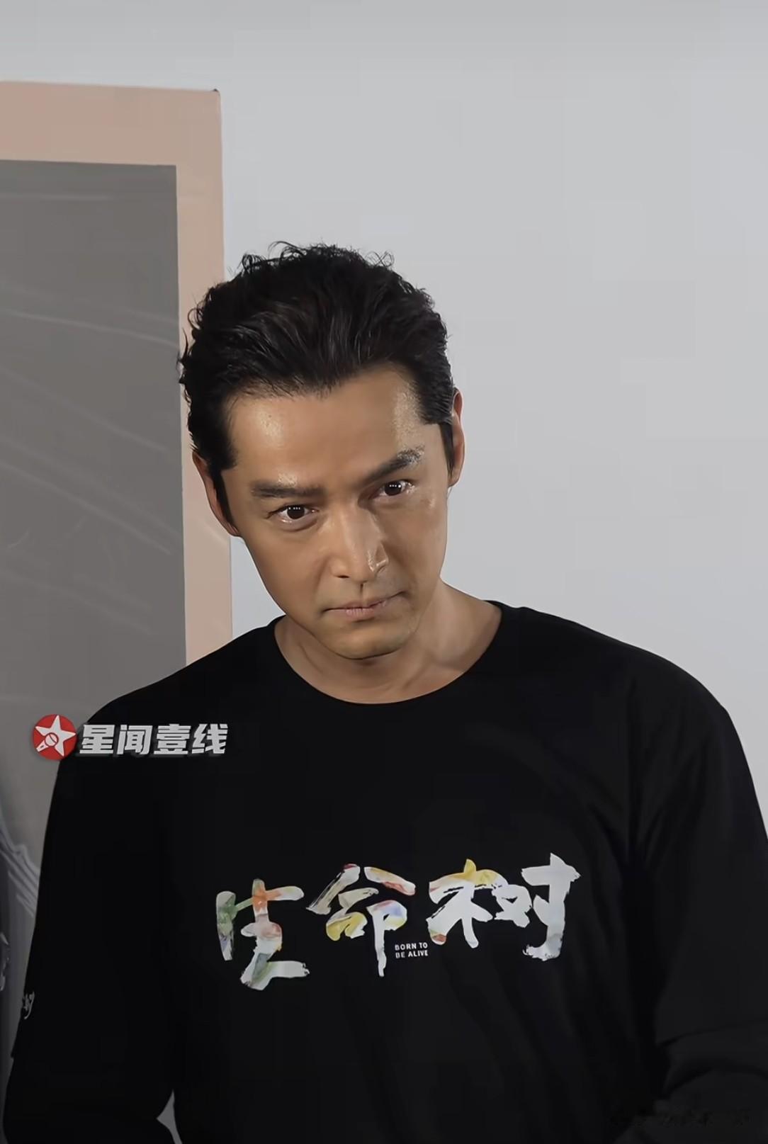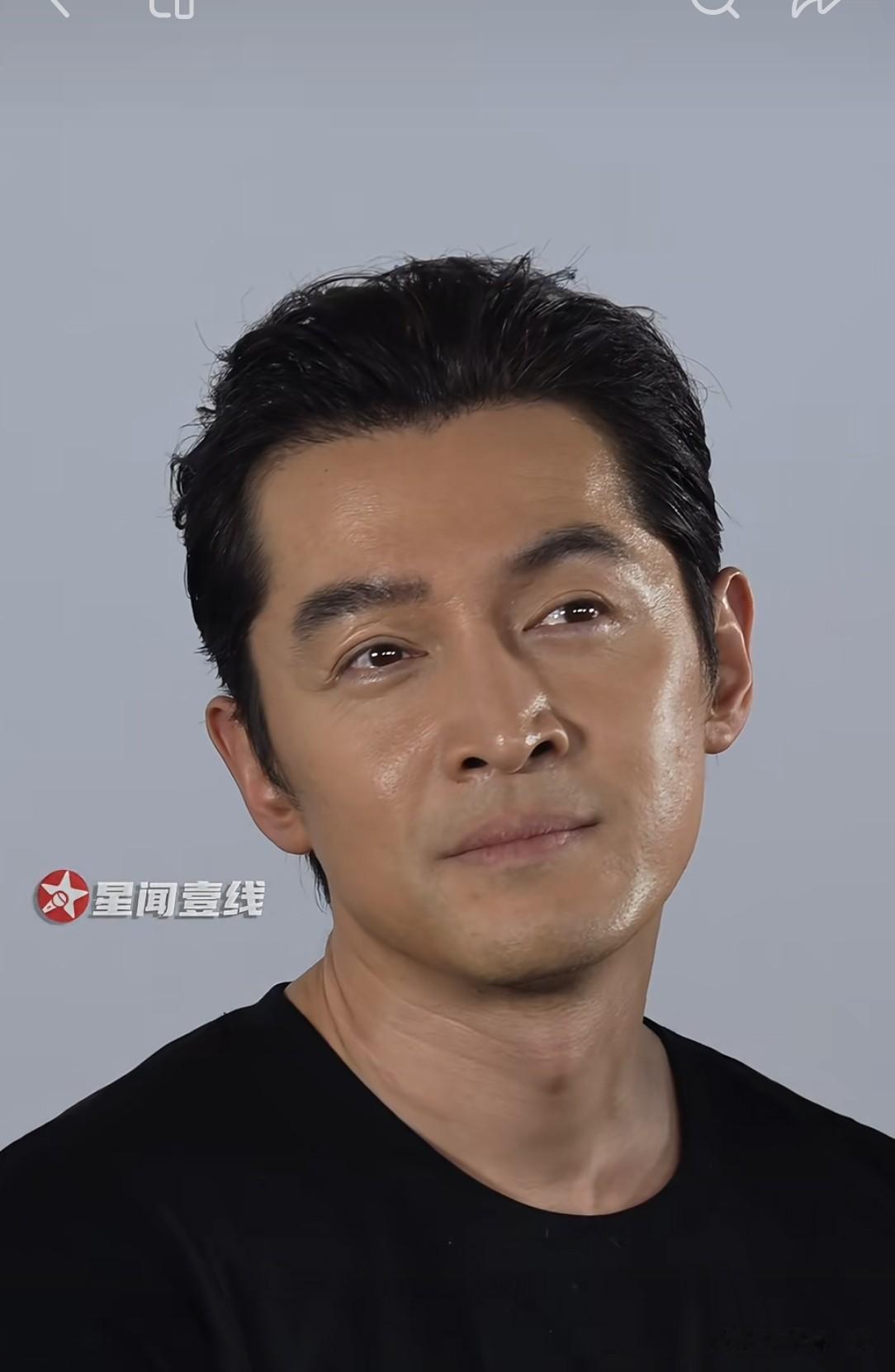 今年已经43岁的他,穿着简单的工装服,肤色看着比平时黑了不少,眼角的皱纹特别明显,他甚至都有意识地控制表情,害怕笑起来的时候纹路都挤在一起被媒体拍到,然而眼神里也藏着藏不住的疲惫出卖了他,就连连脸颊都看着比之前松弛了些。
