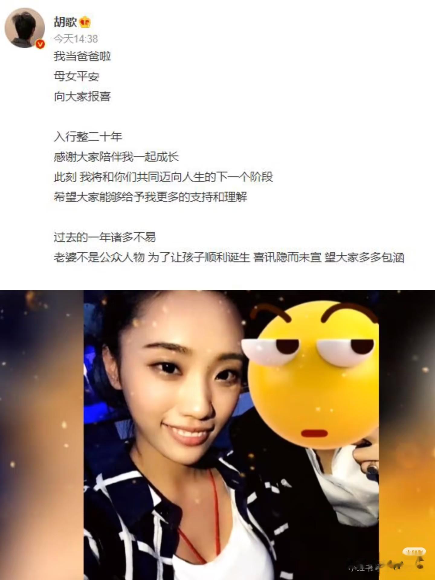 谁也没想到2023年他突然在微博官宣“我当爸爸了,妻子不是公众人物,希望大家给我们空间”,简单一句话直接引爆全网,大家一边送祝福,一边对这位神秘的嫂子充满好奇。