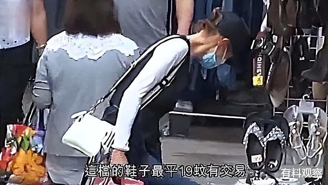 然后穿着简单的服饰,在路边摊看着19元的鞋子。
