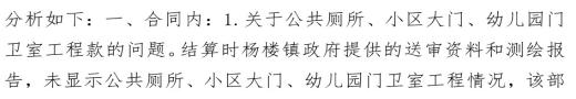 同时,御某公司的用电传票显示,室外强电工程2022年5月竣工验收,晚于2020年1月的审计时间,主张该工程不可能纳入审计范围;一审庭审中杨楼镇政府曾自认强电原计划由供电公司施工,后转由御某公司承建,亦印证该工程为新增项目。