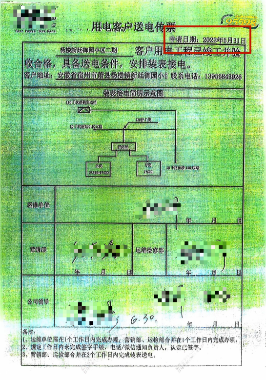 (用电传票,当事人提供)