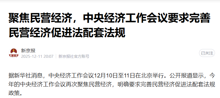 原文标题:聚焦民营经济,中央经济工作会议要求完善民营经济促进法配套法规