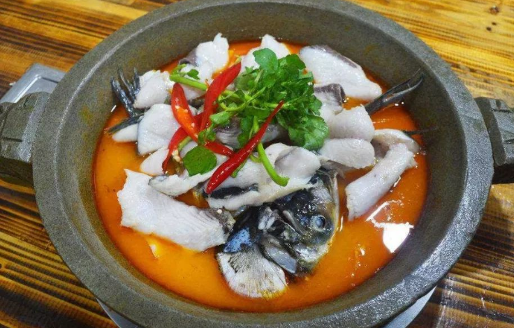 石泉石锅鱼,新鲜活鱼,热辣酸爽蘸料,回味无穷,畅享鲜美滋味。