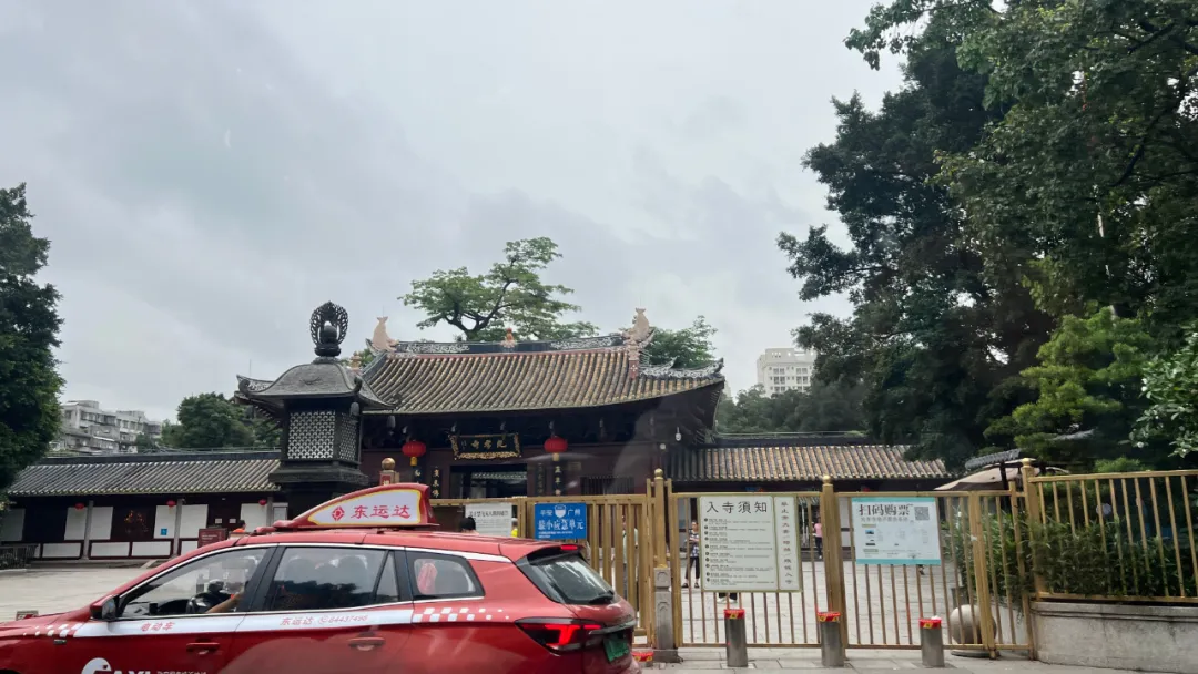 (2024年5月1日辰时,迭学创立者戴欣明从惠州湖镇镇到广州的路上,到达光孝寺门前,找停车位)