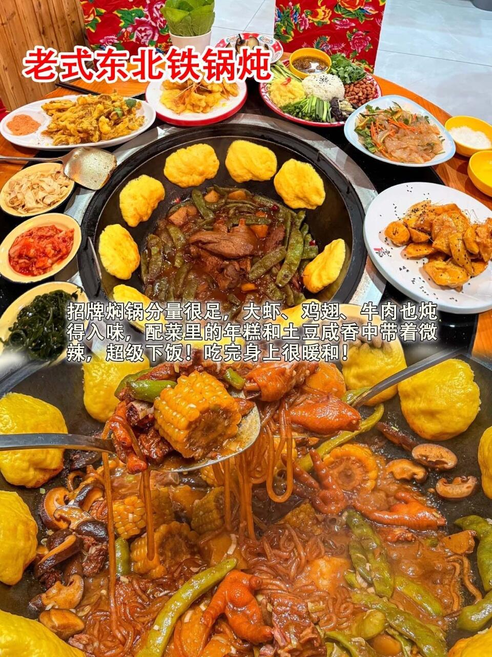 🔥 招牌焖锅分量很足,大虾、鸡翅、牛肉也炖得入味,配菜里的年糕和土豆咸香中带着微辣,超级下饭!吃完身上很暖和!❤️🔥