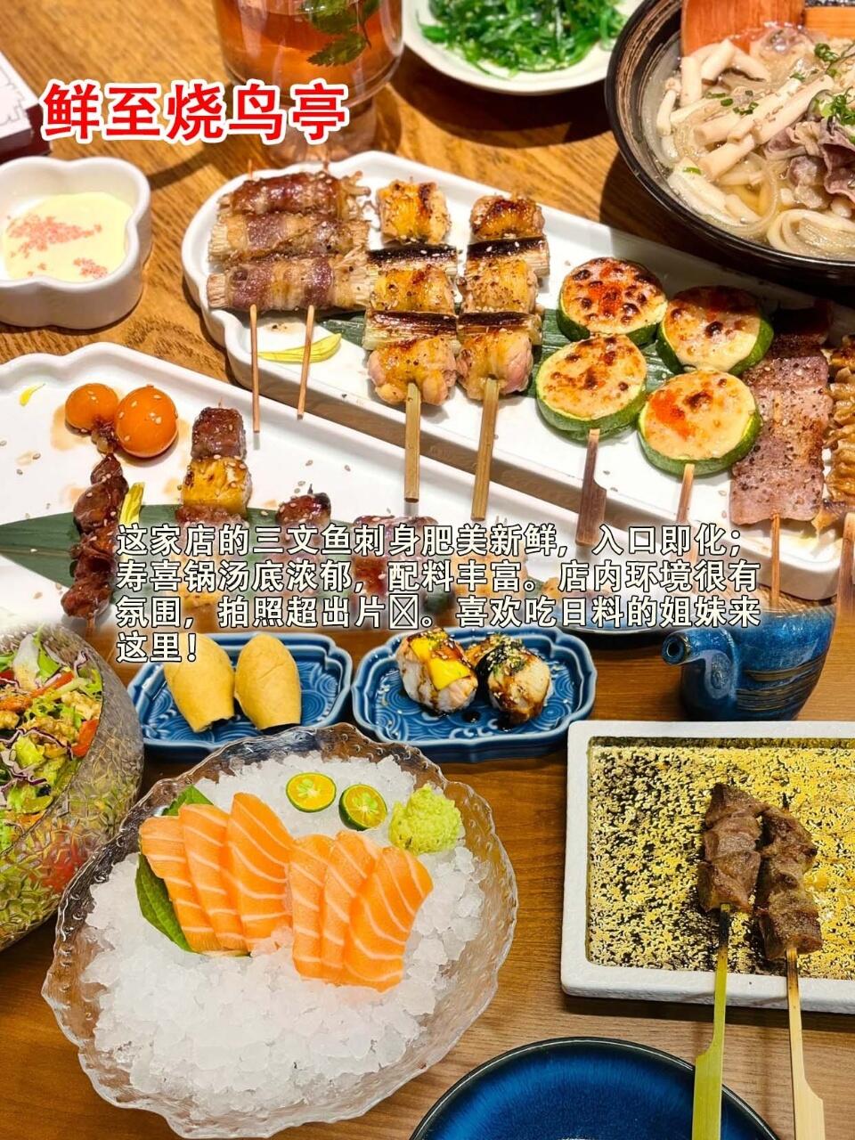 这家店的三文鱼刺身肥美新鲜,入口即化;寿喜锅汤底浓郁,配料丰富。店内环境很有氛围,拍照超出片📸。喜欢吃日料的姐妹来这里!💕