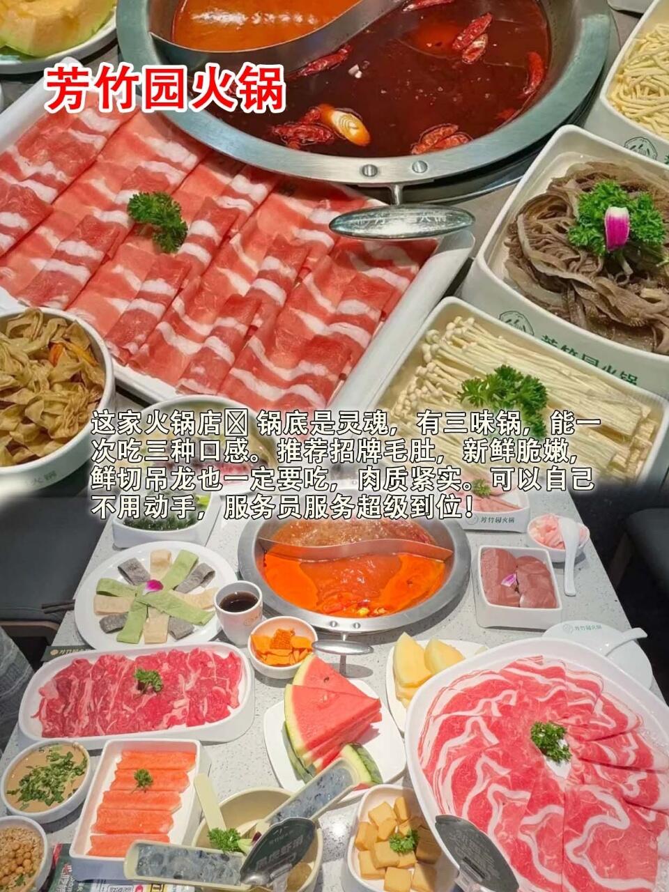这家火锅店🥵 锅底是灵魂,有三味锅,能一次吃三种口感。推荐招牌毛肚,新鲜脆嫩,鲜切吊龙也一定要吃,肉质紧实。可以自己不用动手,服务员服务超级到位!💁♀️