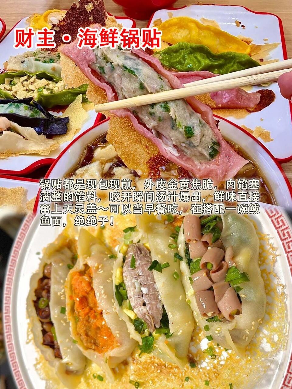 👑 锅贴都是现包现煎,外皮金黄焦脆,内馅塞满整的馅料,咬开瞬间汤汁爆出,鲜味直接窜上天灵盖~可以当早餐吃,在搭配一碗鲅鱼面,绝绝子!👍