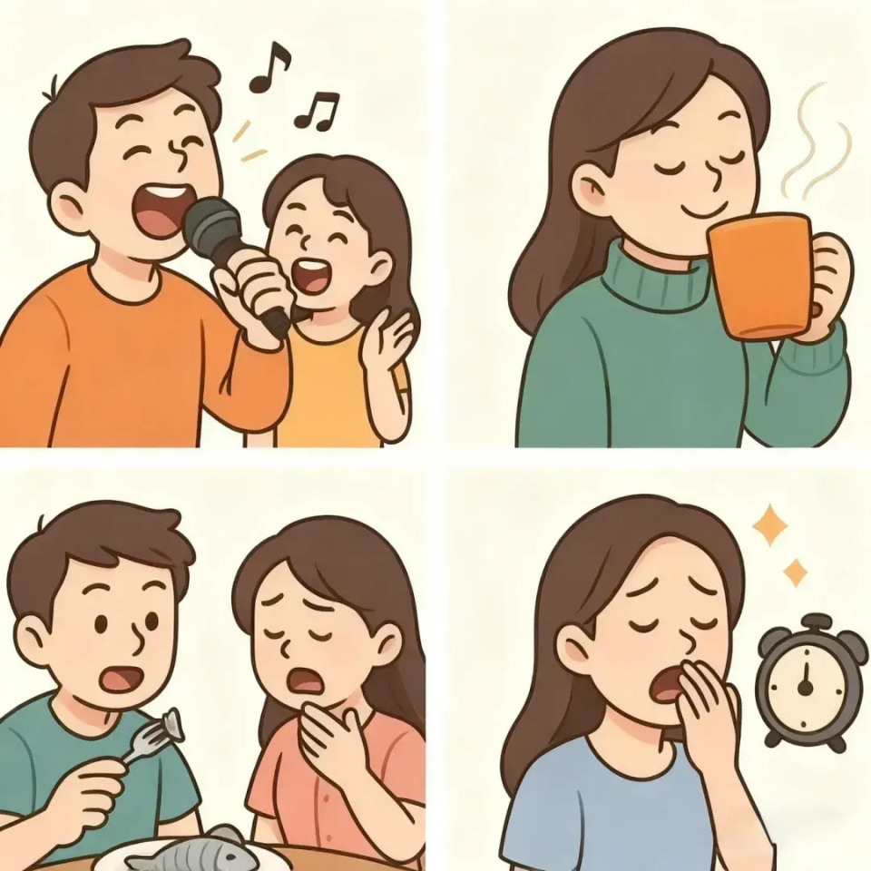 假期最后几天,朋友聚餐、家庭家宴往往更热闹,火锅、烧烤、辛辣菜成为餐桌常客,加上聊天、欢笑时“狼吞虎咽”,不仅容易让鱼刺、骨头等异物卡喉,还会因辛辣刺激、烟酒摄入过多,诱发咽喉肿痛、咽炎复发。尤其本身有慢性咽炎的人,秋燥加上饮食刺激,症状很容易“卷土重来”。