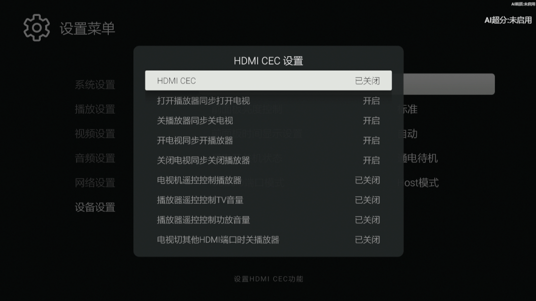 家庭影音系统的遥控器推成了小山?UHD-K9 8K的CEC功能给出解法:通过HDMI-CEC协议,打开设置界面,用一个遥控器(或移动端APP)就能控制播放器、电视、功放等“全家桶”。在“设备控制”界面里,用户能自定义栏中可选多个设备常用功能,实现“电源联动”(关播放器时自动关电视)、“音量同步”等,细节调整后,便能精准调用优渥的影音生态。