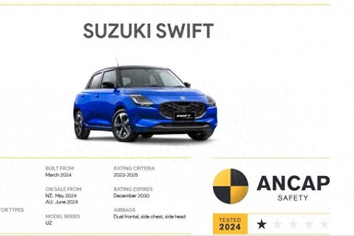 近日,从海外媒体报道获悉,澳大利亚新车安全评鉴协会(Australasian New Car Assessment Program) 公布了一份最新的碰撞测试成绩,其中,铃木Swift仅获得了1 星等级评价,这项结果相比起较早前欧盟NCAP发布的碰撞测试成绩3星评价还要低,这也引起了大量车迷的关注和争议。