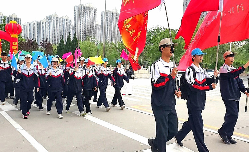 4月14日,春光明媚,万物复苏。河北外国语学院附属中学组织高二年级600余名师生,开展“远足砺志强体魄 逐梦扬威启新程”春季远足实践活动,引导学生在实践中磨砺意志、涵养品格,将立德树人根本任务落到实处,让远足之路成为一堂行走的思政大课。