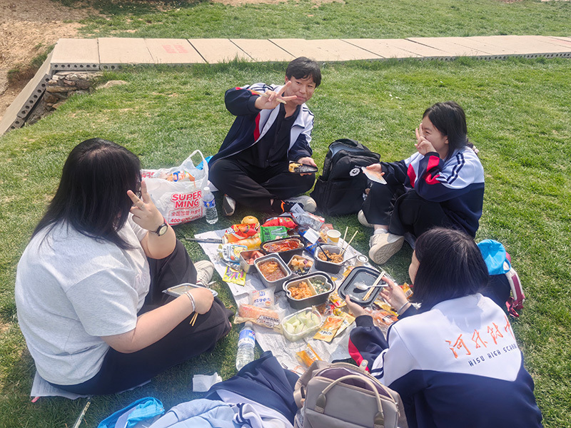 抵达营地后,师生围坐休整,一场充满青春活力的才艺展示火热上演。歌声、笑声、掌声此起彼伏,同学们尽情展示风采,释放青春激情。随后开展的“抢零食”趣味活动更是将现场气氛推向高潮,大家踊跃参与、奋勇争先,在欢声笑语中卸下疲惫、增进情谊,师生同乐、同窗同心,成为春日里一道动人的风景。