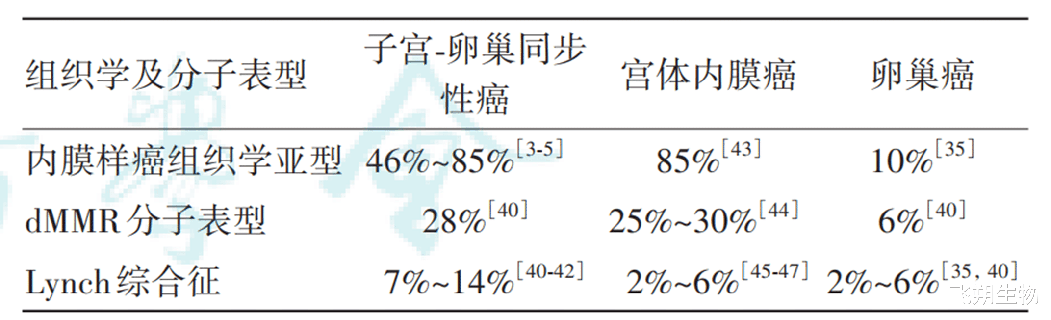 内膜样组织学亚型、dMMR分子表型及Lynch综合征在3种肿瘤患者中的占比情况[1]